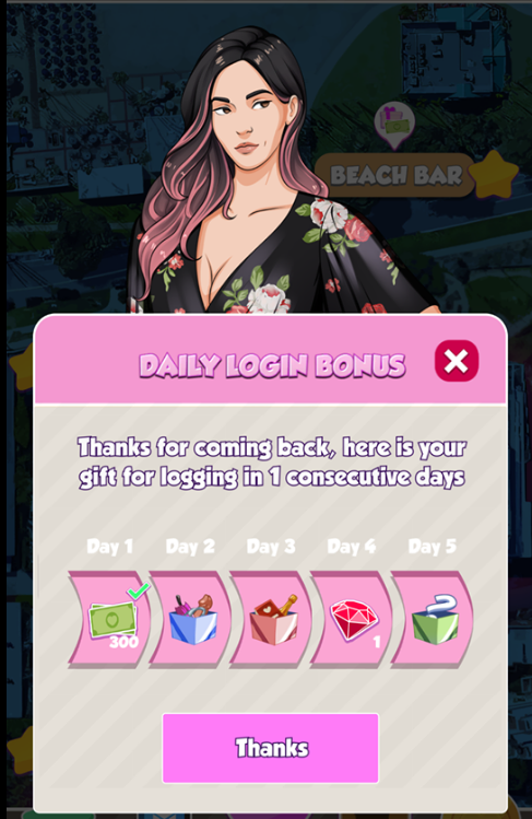 feature rewards you for logging in consecutively in Booty Calls: Men at Work.