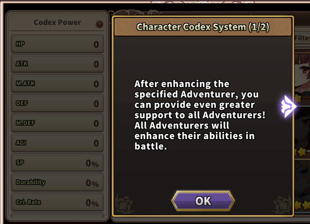 π Codex: The Codex found within the system configuration and main menus serves as a centralized collection and progression system for the adventurers you have encountered or recruited.