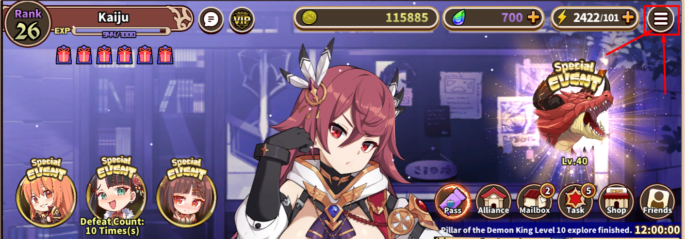 ποΈMain Page Characters: That's where you can select your displayed adventurers.