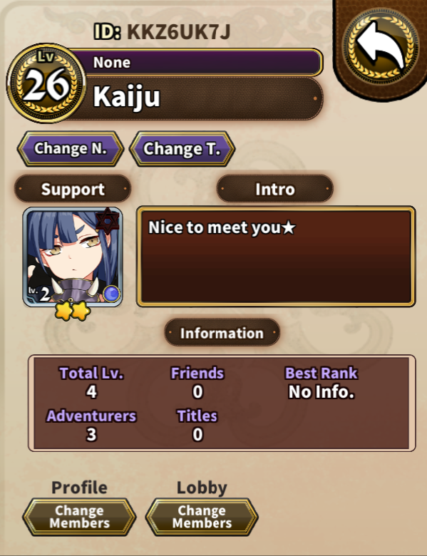 π Profile: This is where you can find your in-game ID. You can also change your name, title, and intro here, and overall information about your profile: