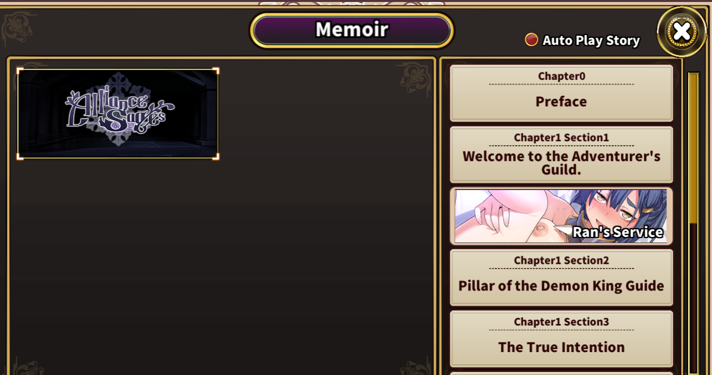 β‘οΈ Tips & Memoir: These sections contain lore entries, tutorial summaries, and a replayable history of the story cutscenes you have unlocked.