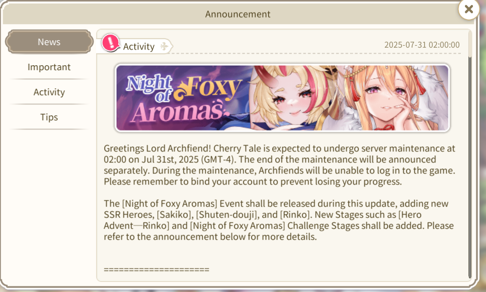 Cherry tale has multiple events waiting for you, and you can become a member on the Discord Community https://discord.gg/eHMvtTYTJs in order to stay up-to-date.
