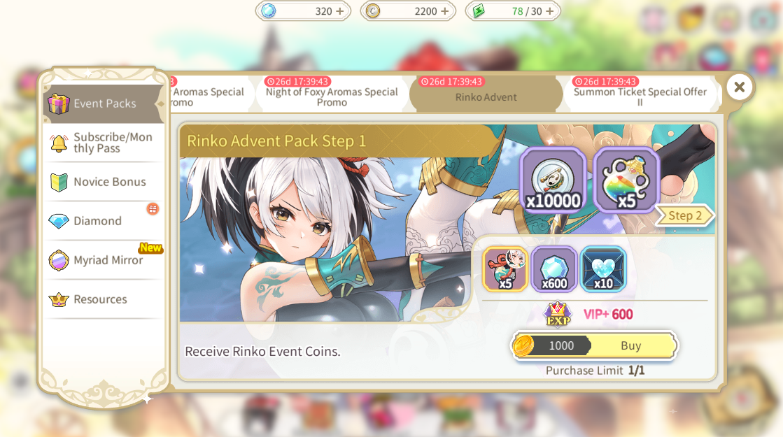 There are Event packs, Novice bonus and Monthly pass that can be purchased in this menu. All of them require Nutaku Gold.