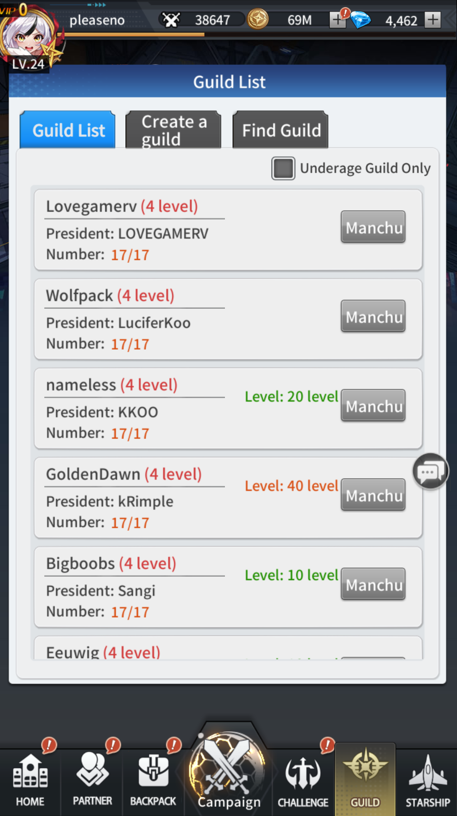 The Guild menu is where you can join, look for, and create Guilds in the game.