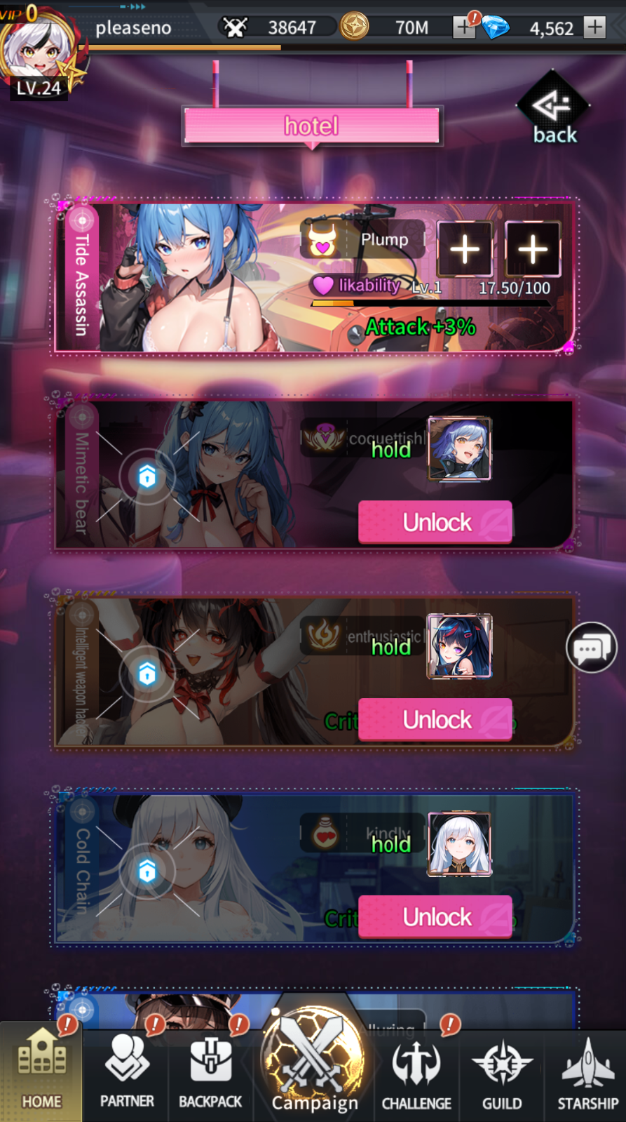 The Happy Hotel menu is where you can access erotic scenes 💕with your girls, give them gifts, and interact with them.