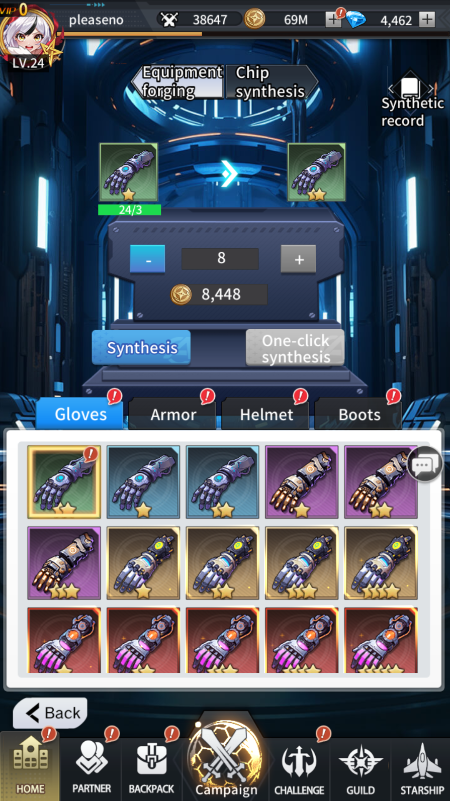The War Factory menu is where you can see, manage and improve your girl's equipment.