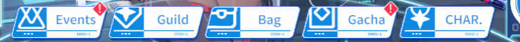 The main menu of the game can be found on the lower part of the screen and it contains: Events, Guild, Bag, Gacha, Characters.