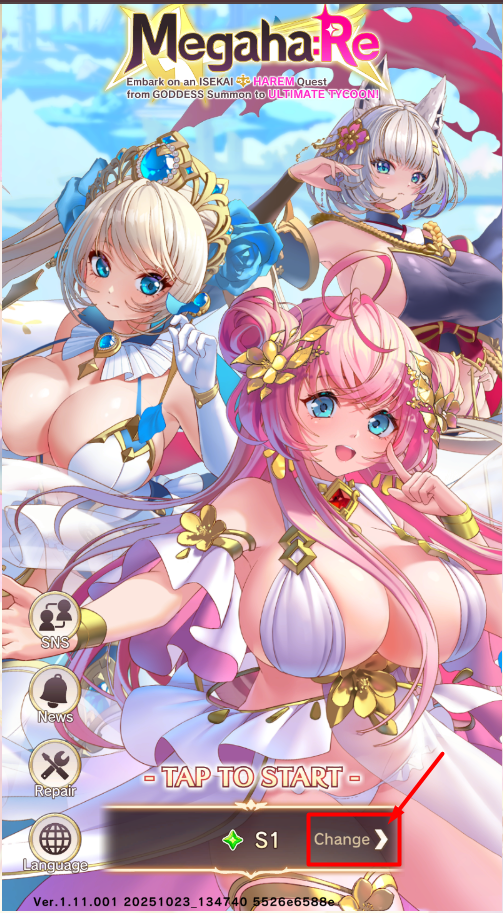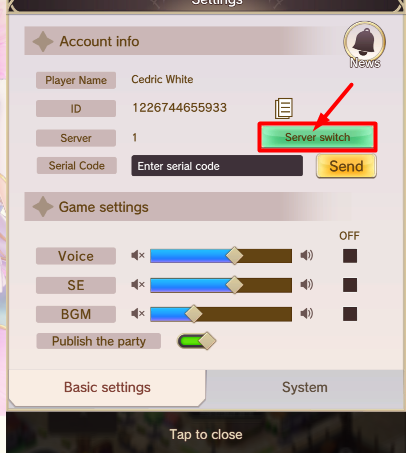 To change the server, go to the start page in-game and click the 'Change' button beside the server number. 👇