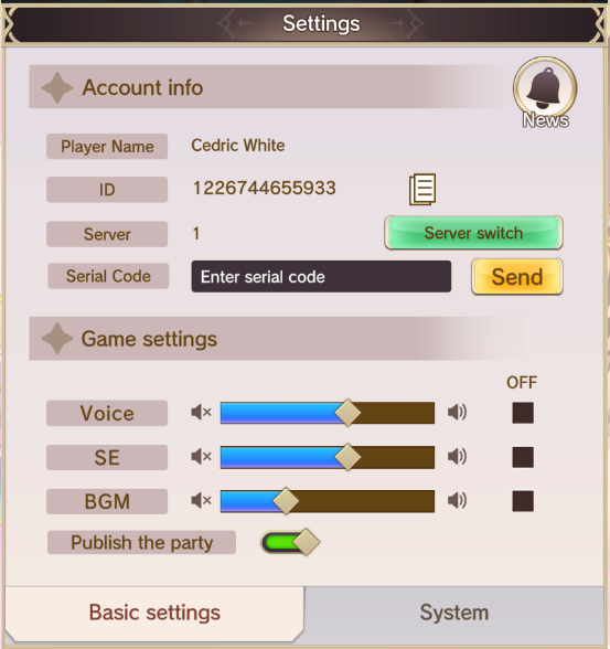 ➡️Settings can be found on the left side of the main screen. It shows your account info and other game settings, 👇