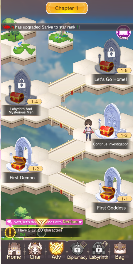 Each Chapter has 5 Stages. Completing a stage and opening the chest will give you rewards.
